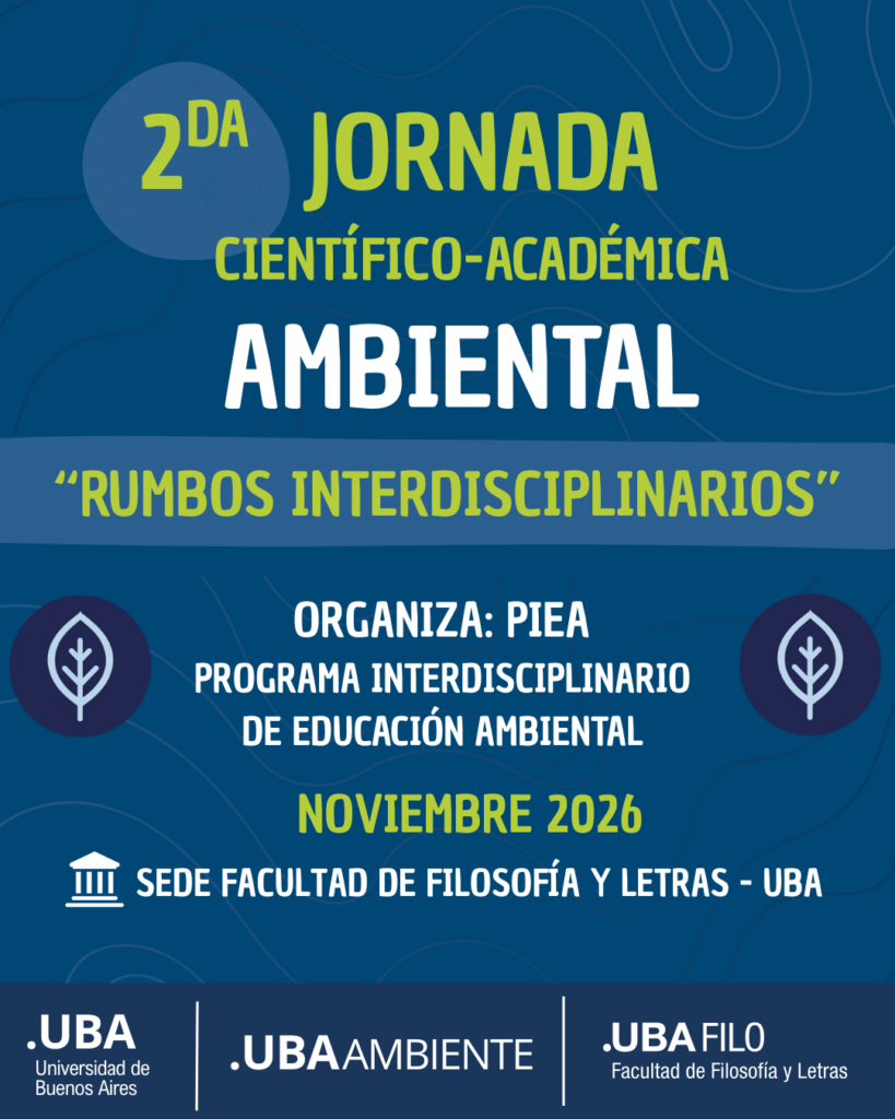 La Universidad de Buenos Aires, a través del Programa Interdisciplinario de Educación Ambiental, convoca a equipos de investigación y extensión de la UBA a participar de la 2° Jornada Científico-Académica Ambiental “Rumbos Interdisciplinarios”, un espacio de encuentro, reflexión y debate en torno a los desafíos ambientales contemporáneos.